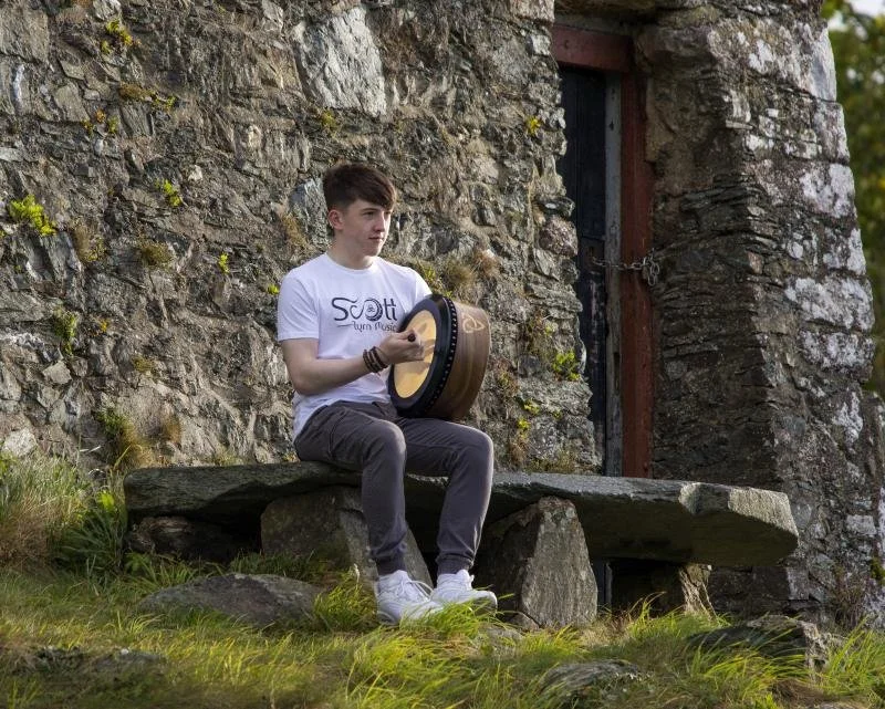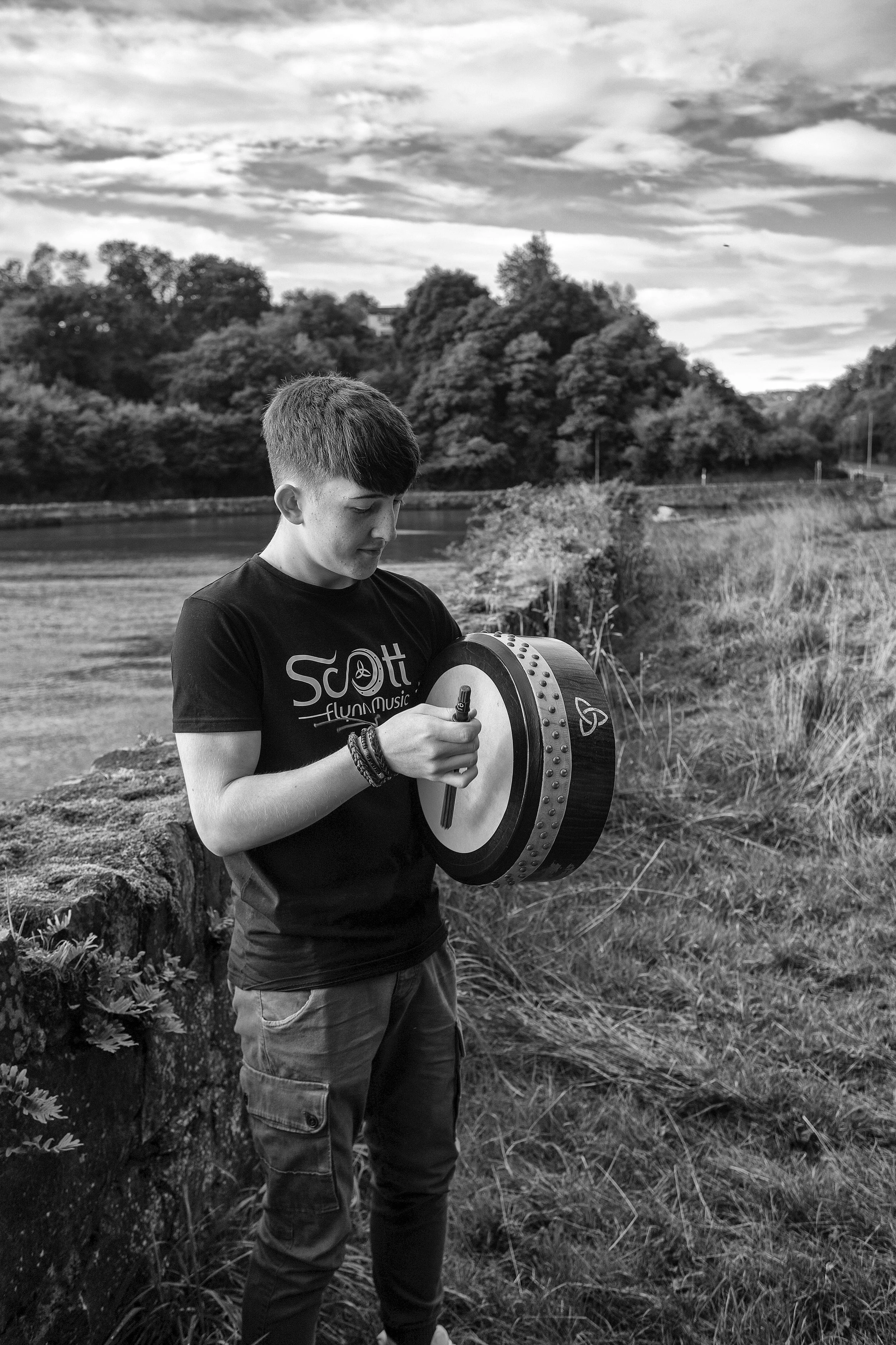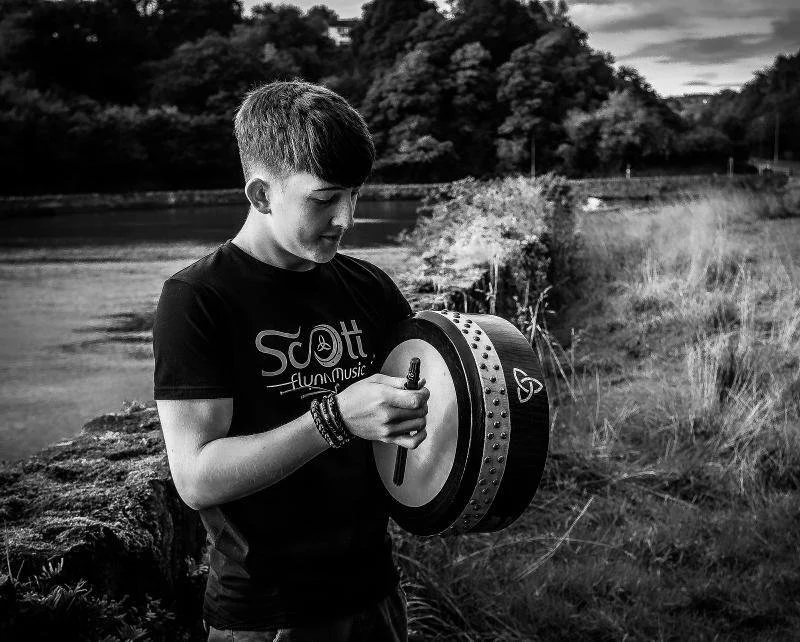 At just 16, Scott Flynn is already a standout figure in Irish traditional music. Hailing from the southeast of Ireland, his journey with the bodhrán started as a passion quickly became a path, one that’s taken him to stages and screens he never imagined, and connected him with some of the best in the business, people who share the same love for music and tradition.